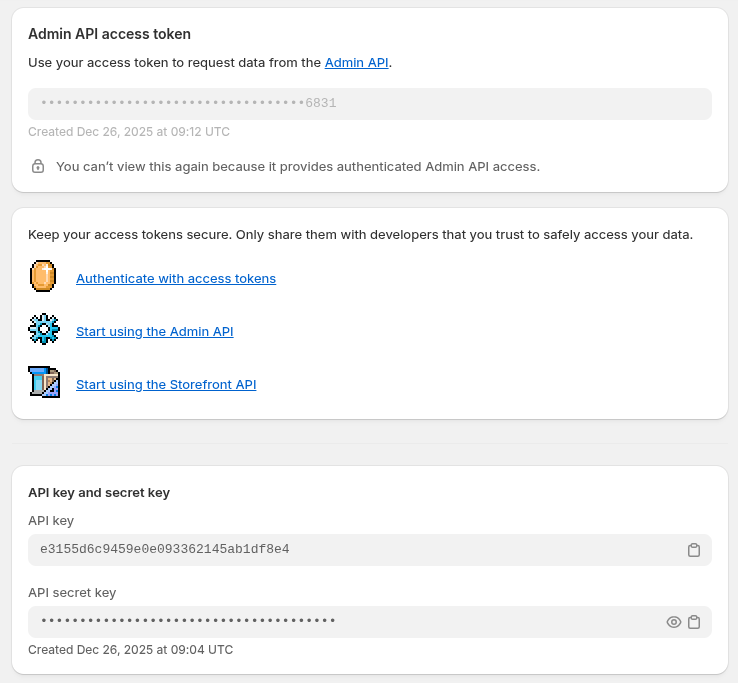 • Admin API access token (permanent)