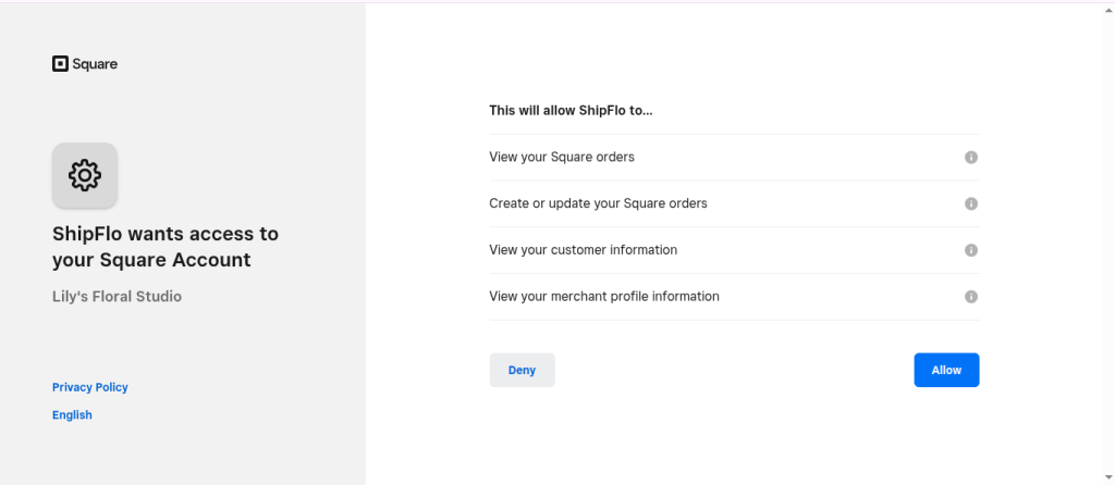 • Click Allow to grant ShipFlo access.